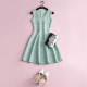 欧美设计师 立体纹理提花 薄荷绿 修身针织百褶A字包袖连衣裙