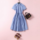 包邮巴黎秀刘亦菲 重工订钻徽章 收腰优雅挺括裙摆衬衫式连衣裙