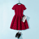 节日专享暗红立体人字纹提花混纺羊毛针织蓬蓬裙连衣裙