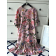 美轮美奂植物花卉 复古水彩花色印花 甜美褶皱荷叶边真丝连衣裙