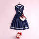 学院风减龄 复古海军水手领 360度大摆百褶中长款棉质连衣裙