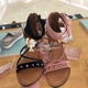 专柜正品代购思加图2017年夏新款平底羊绒皮柳钉女凉鞋9G802 G802