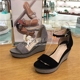代购专柜正品思加图2017年夏新款绒面坡跟高跟女凉鞋K1101D K1101