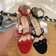 专柜正品代购思加图2017夏新款绒面交叉带细中跟女凉鞋9E702 E702
