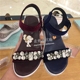 专柜正品代购思加图17夏新款牛仔布水钻坡高跟女凉鞋9RG11 9RG13