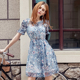 范非思雪纺印花矮小个子连衣裙子夏装a字裙韩风显瘦碎花假两件