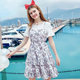 范非思雪纺2017夏新品便宜修身显瘦淑女蛋糕裙假两件印花连衣裙子