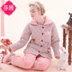 浅休2016新款薄款三层夹棉睡衣女秋冬季时尚长袖针织棉家居服套装