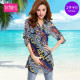 欧得拉大码女装雪纺中长款衫宽松韩版雪纺衫碎花中袖小衫上衣