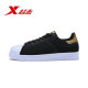 特步2017春季新品休闲鞋情侣贝壳头革面耐磨防滑透气撞色女款白鞋