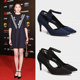 卓丰侧空尖头高跟鞋女春季2017新款细跟韩版职业百搭黑色绒面单鞋