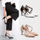 春季尖头高跟鞋女细跟交叉绑带凉鞋女夏包头中跟性感百搭拼色女鞋