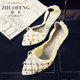 卓丰走秀款粗跟凉鞋女夏浅口方头小香双色鞋女高跟鞋百搭中跟女鞋