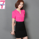 拼接假两件连衣裙雪纺夏短袖 2017新款OL女装裙子v领一步中裙包臀