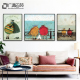 北欧客厅装饰画 现代简约挂画 沙发背景墙卡通麋鹿壁画创意三联画