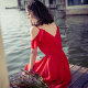 夏季新品女装红色短裙子无袖雪纺连衣裙波西米亚沙滩裙海边度假裙