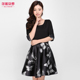 胖mm加大码女装2017夏装新品胖妹妹蝴蝶印花修身中袖圆领连衣裙