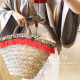 2017夏季新款lin同款海边度假风沙滩皮革边饰带缀饰编织草手提包