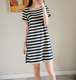 不挑人穿 清新减龄 活力海军风 蓝白条纹A字连衣裙 亲肤针织棉!