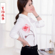2016秋装新款女装韩版白色衬衫女修身印花雪纺衬衣长袖打底衫上衣