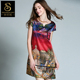 丝宫坊2017春夏真丝女装新款桑蚕丝连衣裙高档中年宽松印花长裙