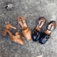 一字扣粗跟女鞋方头中跟单鞋春夏英伦风复古拼色皮带扣凉鞋奶奶鞋
