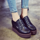 圆头布洛克女鞋英伦风内增高漆皮厚底鞋女松糕底春季系带坡跟高跟