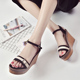 韩版坡跟凉鞋女夏2017新款高跟鞋防水台露趾厚底一字扣带凉鞋女鞋