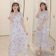 2017夏季新款短袖连衣裙雪纺小碎花露肩中长款孕妇连衣裙时尚长款