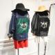 SUSU春秋新款黑色牛仔衣刺绣小蜜蜂宽松破洞牛仔外套短款女装上衣