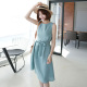 棉麻连衣裙女无袖2017夏装新款韩版女装小清新修身显瘦系带裙子
