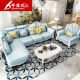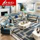 布佳伲 美式沙发 简约欧式真皮组合客厅皮艺蓝色沙发实木家具