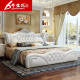 布佳伲 欧式床双人床美式实木真皮床1.8米卧室家具奢华田园婚床