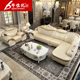 布佳伲 奢华欧式组合沙发 全实木进口真皮沙发美式香槟色客厅家具