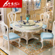 布佳伲 欧式餐桌 餐桌椅组合 大理石实木法式小户型圆饭桌带转盘