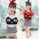 童装女童夏装2017新款韩版卡通猫套装条纹背心裙子儿童夏季两件套