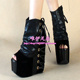 春季新款14CM超高跟单鞋欧美性感防水台恨天高系带粗跟罗马女鞋子