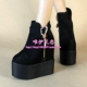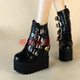 2017春季新品14cm超高跟鞋坡跟女靴柳钉搭扣厚底内增高松糕鞋单鞋