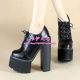 2017春季欧美新款厚底女鞋14cm高跟鞋系带防水台罗马粗跟女单鞋