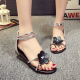 夏季韩版新款平底夹趾凉鞋休闲学生女鞋平跟花朵沙滩鞋百搭罗马鞋