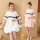 时尚韩版拼接夏装新款短袖宽松韩大码孕妇装连衣裙甜美韩版中长款