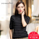 亿羊纯2017夏季新品修身条纹针织衫 时尚半高圆领打底衫女YD15312