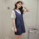 大码女装2016新款纯棉t恤连衣裙女夏 宽松中长款套装背带裙两件套
