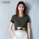 Amii[极简主义]短款t恤女半袖圆领百搭修身印花紧身短袖露脐上衣
