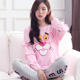 春秋季少女睡衣女长袖纯棉套头宽松卡通女士特大码胖MM家居服套装