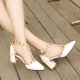 新款凉鞋女优雅粗跟高跟鞋白色鱼嘴鞋防水台一字带大码女鞋子夏天