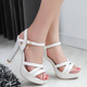 夏季新款凉鞋白色性感粗跟高跟鞋女士鱼嘴鞋厚底防水台女鞋一字带