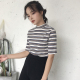 夏季复古风撞色条纹百搭修身显瘦半高领短袖上衣学生打底衫T恤女