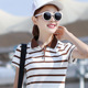 新款纯棉条纹t恤女短袖修身显瘦大码女装翻领polo衫运动上衣女