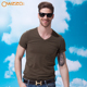 Owzza/欧楂男士T恤棉修身紧身运动短袖t恤男汗衫打底衫V领夏季